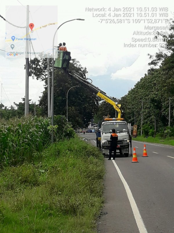 | Isi Laporan | : | Lampu PJU mati di tepat depan kantor PLN Margasari yakni digerbang RW 02 Karangjati Margasari Akses tersebut adalah keluar masuk warga Titik koordinat -7,0957583, 109,0236737 Dekat Margasari, Kec. Margasari, Tegal, Jawa Tengah |