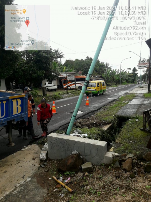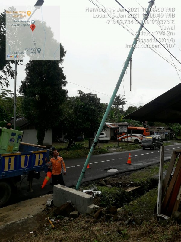 | Isi Laporan | : | tiyang listrik depan gedung MWCNU Bojong sdh miring |