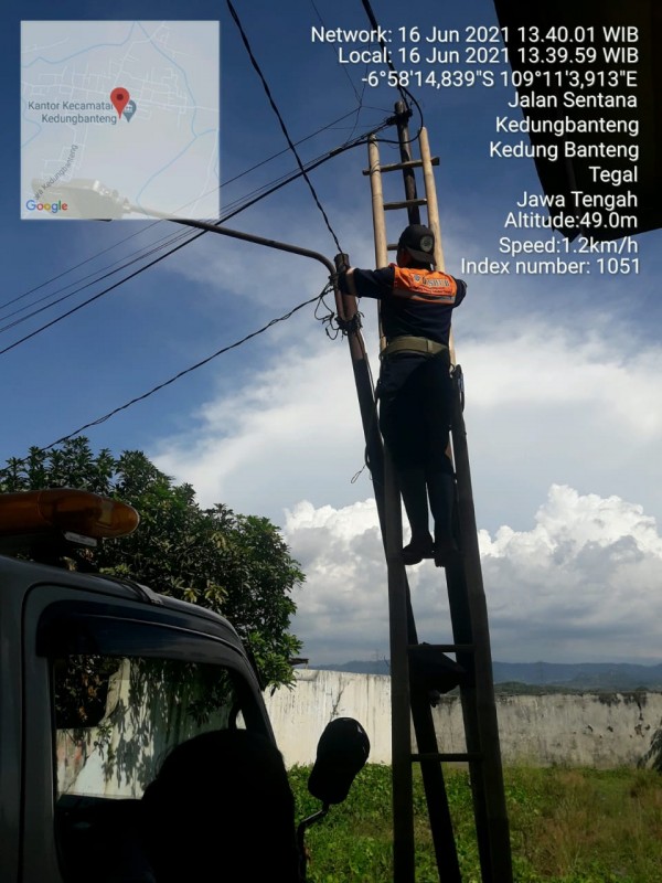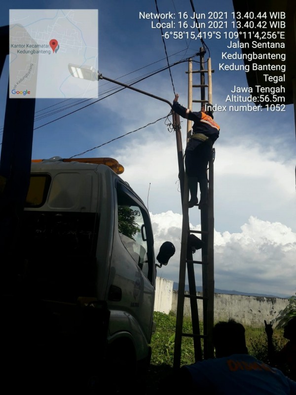 | Isi Laporan | : | Di lingkungan Kantor Kec. Kedungbanteng terdapat 3 buah LPJU tidak menyala (rusak). Kami mohon agar perbaikan LPJU agar menyala kembali sehingga dapat menciptakan situasi keamanan yang kondusif. Demikan untuk menjadikan periksa dan atas bantuannya kami sampaikan terima kasih. |