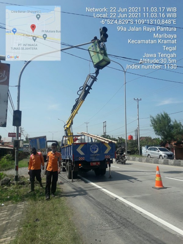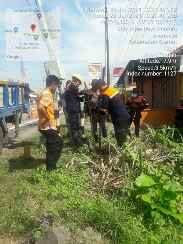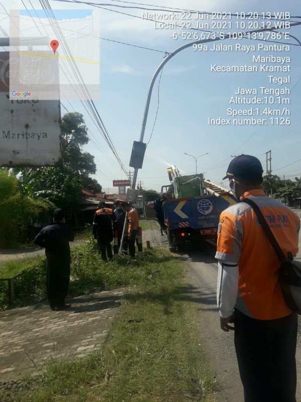 | Isi Laporan | : | PJU di dpn SD 01 Kramat di tabrak kendaraan, tiang msh berdiri tp melengkung krn dikhawatirkan mengganggu pengguna jalan, mhn unt segera ditindak lanjuti |